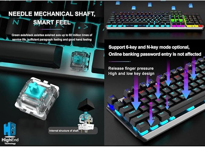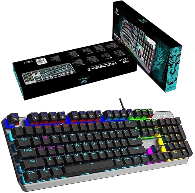 كيبورد ألعاب AULA F2066 ميكانيكي بإضاءة RGB، تصميم معدني متين، مفاتيح Blue Switch استجابة سريعة.